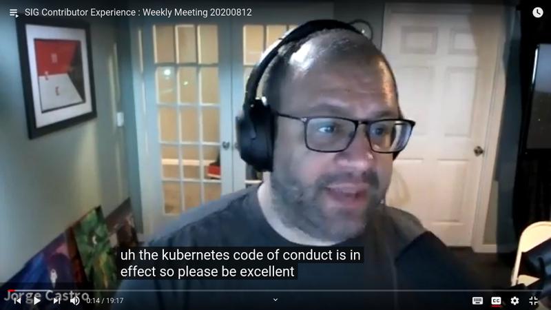 "The Kubernetes Code of Conduct is in effect, so please be excellent to each other." — Jorge Castro, SIG ContribEx co-chair