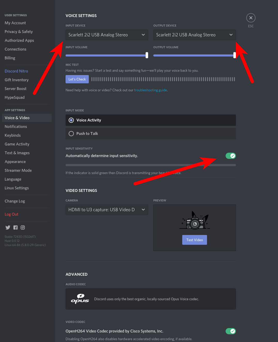 - Navigate to the Voice & Video section of the User Settings to adjust your